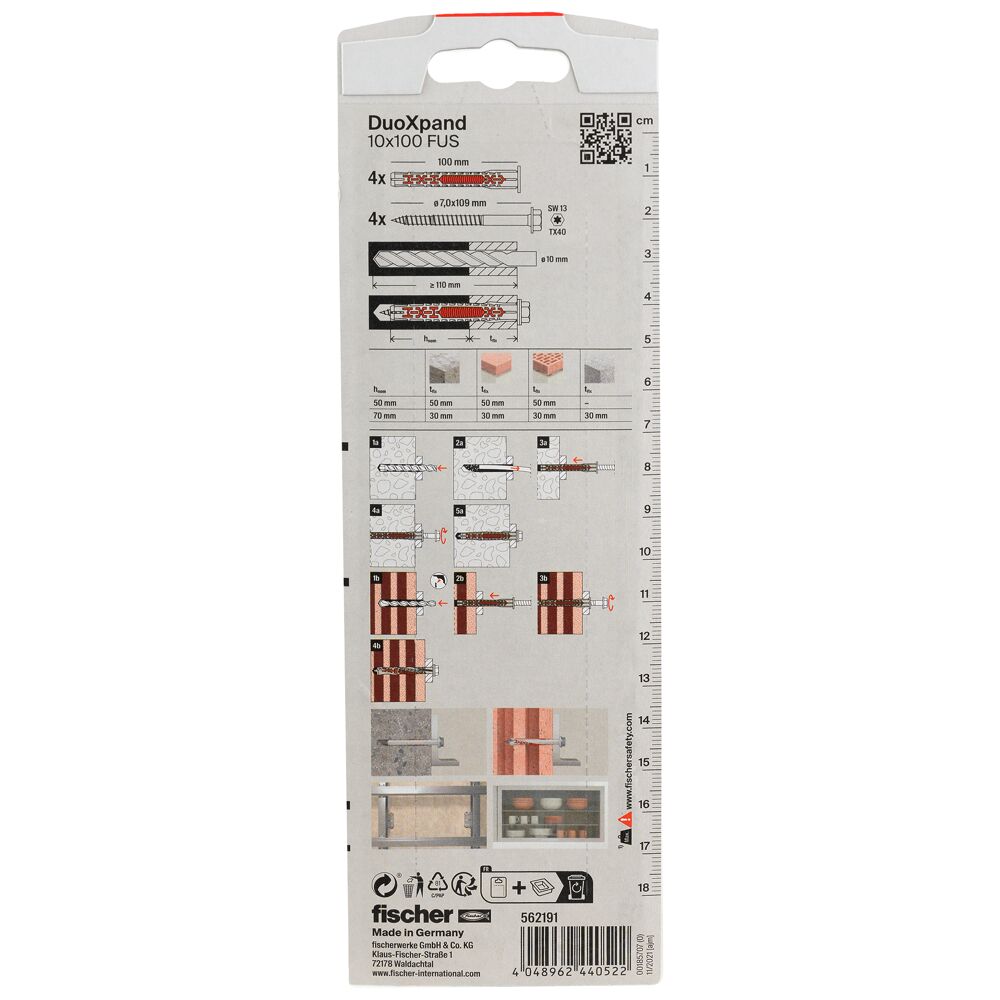 Fischer DuoXpand, naujausiomis technologijomis pagamintas(2K TECHNOLOGY) padidinto plėtimosi universalus tvirtinimo sukamas elementas, skirtas atsakingoms konstrukcijoms: stogų, fasadų, lubų ir pan. Pilnai sertifikuotas produktas turintis: CE, ETA, DOP, R90(degumo klasė).