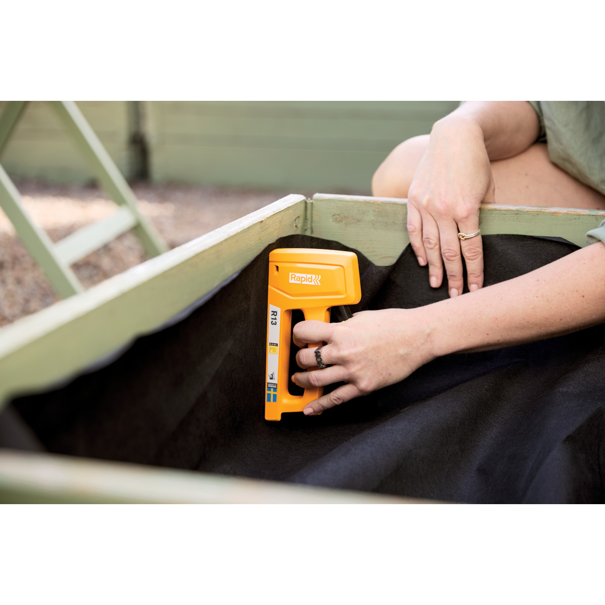Kabiamušis lengvu ir ergonomišku dizainu, idealiai tinka tiems, kurie turi mažesnes rankas. Puikus pasirinkimas namų vartotojui, kuris reikalauja našumo ir universalumo. Naudojamas baldų apmušalams, plonesnių medžiagų tvirtinimui, audiniams, odai, popieriui. Ergonomiškas R13 pagamintas Švedijoje iš smūgiams atsparaus ABS plastiko, kurio darbinės dalys pagamintos iš aukščiausios kokybės plieno.