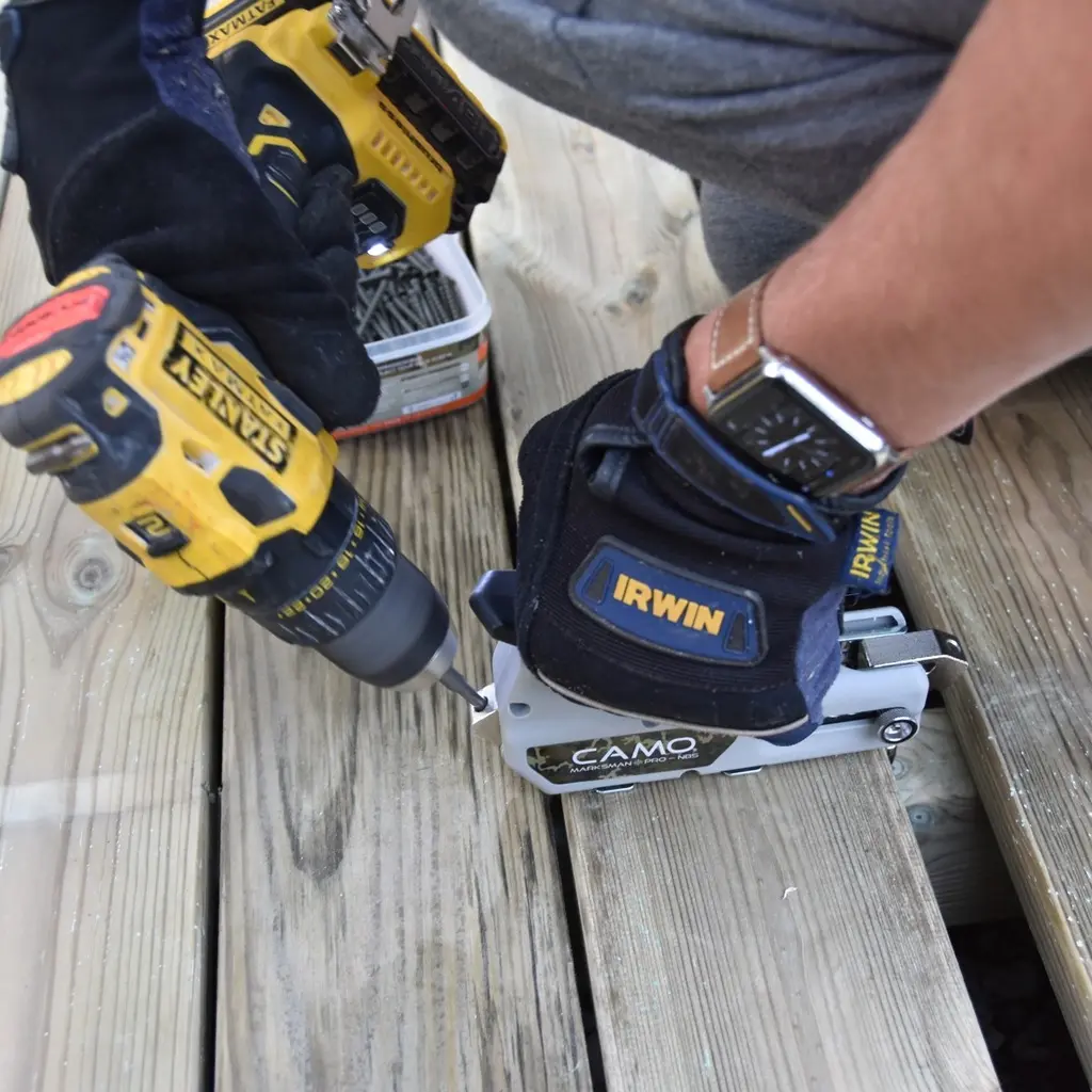 CAMO medsraigčiais ProTech sukuriamas gražus, lygaus terasos paviršiaus be varžtų vaizdas, suteikiantis estetinį švarumo, modernumo ir saugumo vaikščioti basomis pojūtį.