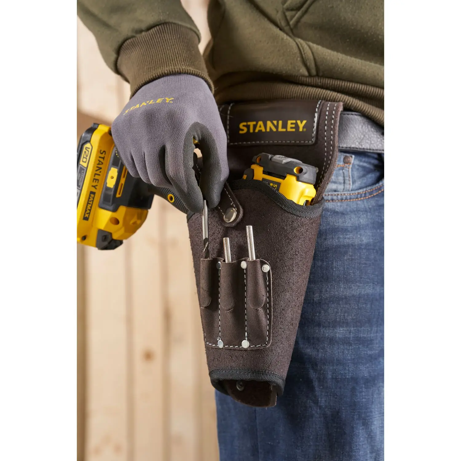STANLEY® odinis suktuko laikiklis turi odinę juostelę, skirtą suktukui pritvirtinti laikiklyje, ir integruotą antgalių laikiklį, leidžiantį lengvai pasiekti antgalius. Tinka naudoti tiek kairiarankiams, tiek dešiniarankiams. Pagamintas iš aukštos kokybės zomšinio odos ilgaamžiškumui užtikrinti, yra STANLEY® odinių įrankių diržų serijos dalis.