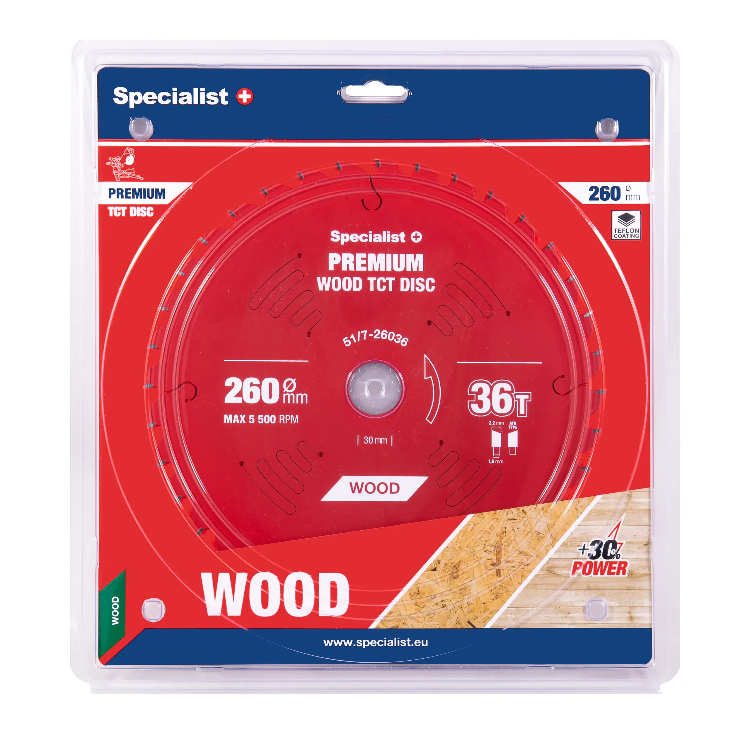Pjovimo diskas 260x36Tx30mm, Wood PREMIUM, SPECIALIST+