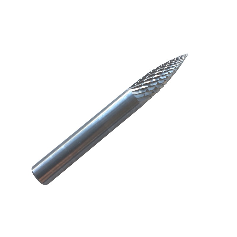 Kietmetalio freza RBF formos. Skirta naudoti su pneumatiniais ir elektriniais šlifavimo įrankiais. Darbinis frezos storis 6 mm, kotelio skersmuo 6 mm.
