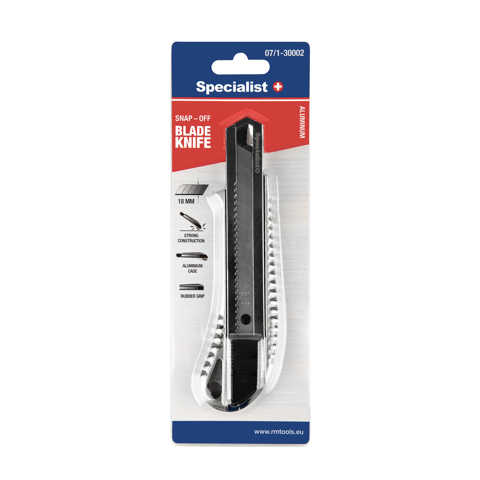 Tvirtas aliuminio korpuso peilis 18 mm laužomoms geležtėms.