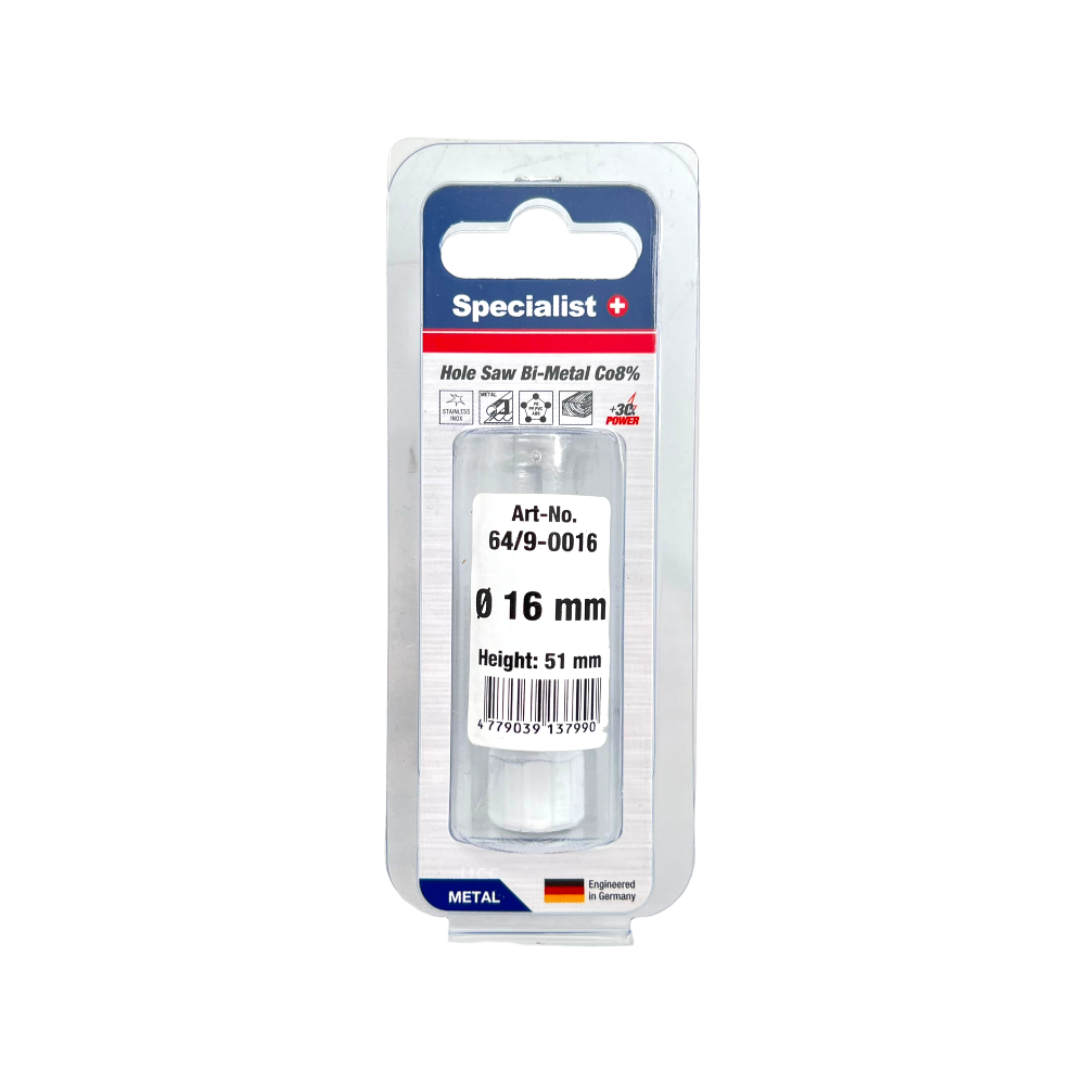 Bi-Metal HSS-Co(8%) ypatingai ilgaamžės ir greitos gręžimo karūnos, karūnos gylis – 51 mm. • Puikiai tinka gręžti: Juodą metalą, spalvotus metalus, nerūdijantį plieną, minkštą medieną, medieną su vinimis, laminatą, Plastiką (PVC, PE, PP, PS, PA), Stiklo pluoštu sustiprinta plastikinę plokštę, Akrilinį stiklą, Izoliacinę plokštę, putplasčio plokštę, Gipso kartono plokštę • Galima gręžti: Statybinį plieną, Ketu, OSB plokštė, Kietmedį, MDF plokštę, Terasos medieną, Multiplex plokštę, HDF plokštę, Parketą • Suprojektuota ir patobulinta Vokietijoje